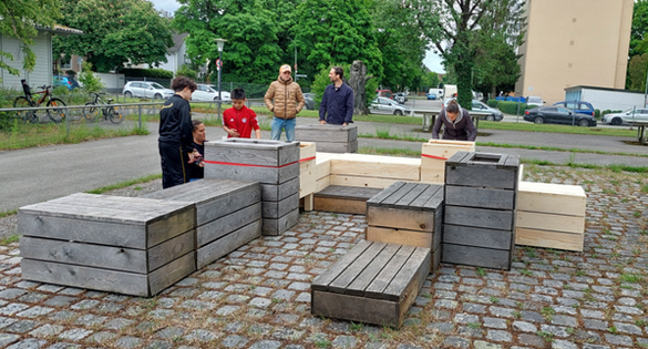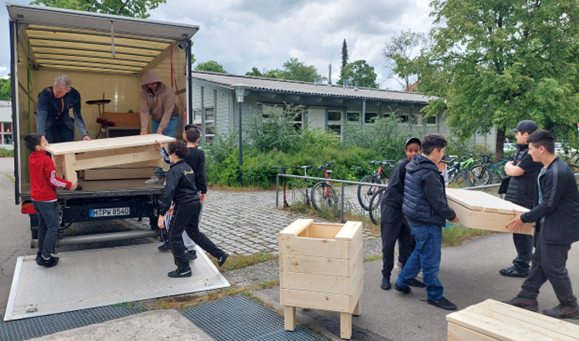 Wieder mal beschenkte uns die Projektwerkstatt von der Hochstraße mit von Schüler*innen unter Anleitung gebauten Sitzmöbeln. Die Pädagogen der Projektwerkstatt verfügen nicht nur über handwerkliches Können, sondern auch über großes pädagogisches Geschick, so dass die Ergebnisse stets überzeugend und darüber hinaus für das Schulleben gut zu gebrauchen sind. Die Sitzmöbel werden mit schon älteren Projektmöbeln kombiniert und dienen so zur Bereicherung des Schullebens. Vielen Dank an die Projektwerkstatt für ihr enormes Engagement und die tollen Ergebnisse.