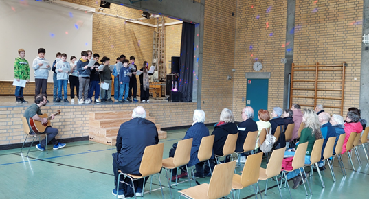 Gesang. Seit 16 Jahren findet nun schon dieser für alle beteiligten interessante und vergnügliche Austausch zwischen den Generationen statt.