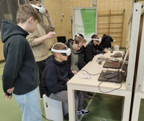 Im Projekt Erinnern und Bewahren haben Studierende der LMU gemeinsam mit unserern Schüler:innen unter Mitwirkung von drei Fachdidaktiken – Deutsch, Katholische Religionsdidaktik und Politische Bildung – ein immersives, reflexives Lernsetting entwickelt, das historisches Lernen mit individuellen Diskriminierungserfahrungen verbindet. Die Ausstellung fand am 22. und 23. Mai 2025 Mai an unserer Schule statt. Dabei wurde mit modernster Technik (VR-Brillen) historisches Lernen in schülerorientierter Form erprobt und mit Erfolg vermittelt, um sich mit Diskriminierungsmechanismen wie z.B. dem Antisemitismus auseinanderzusetzen.