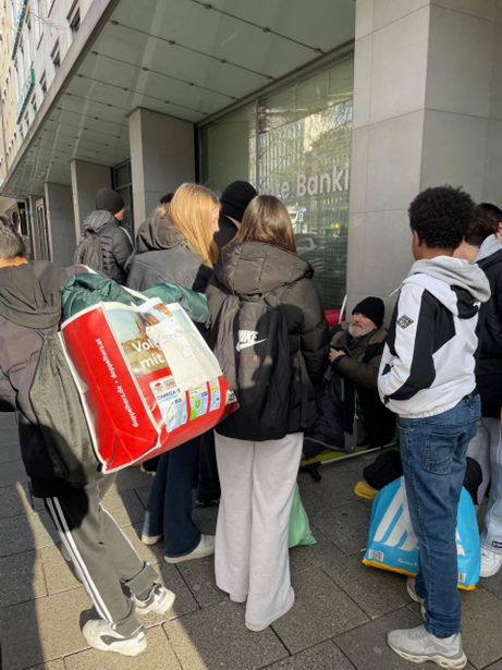 Auch in diesem Jahr kümmerte sich die Klasse 7a in der Vorweihnachtszeit unter Leitung von Herrn Dr. Scharl um Obdachlose . Eine ergiebige von der Klasse organisierte Spendenaktion ermöglichte es hier, die Lebensmühen der Betroffenen etwas zu mindern und konkrete Hilfe zu leisten.