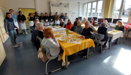 Die Küchenmannschaft unter Leitung von Frau Vormwald begrüßt Senior*innen zur alljährlichen Begastung.